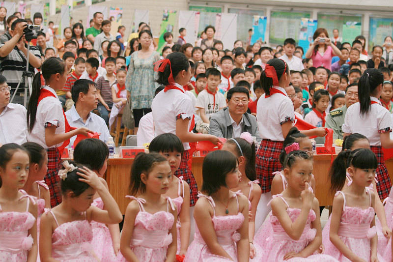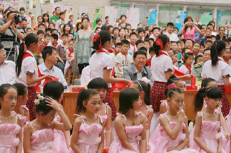 2010年6月1日早上9:10,市里领导路国贤一行前来我校参加六一新教育展示和六一节目展示。