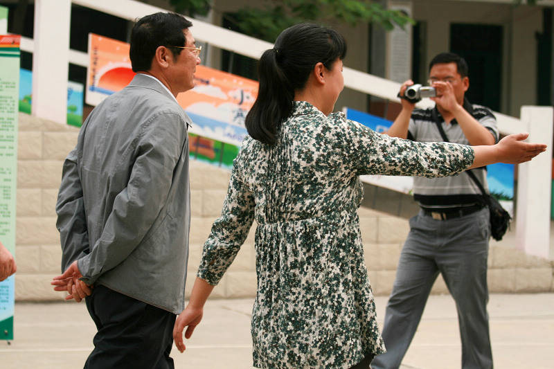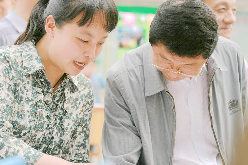 教育局长张丙辰以及我校校长冯智利陪同参观我校的新教育班级展示。