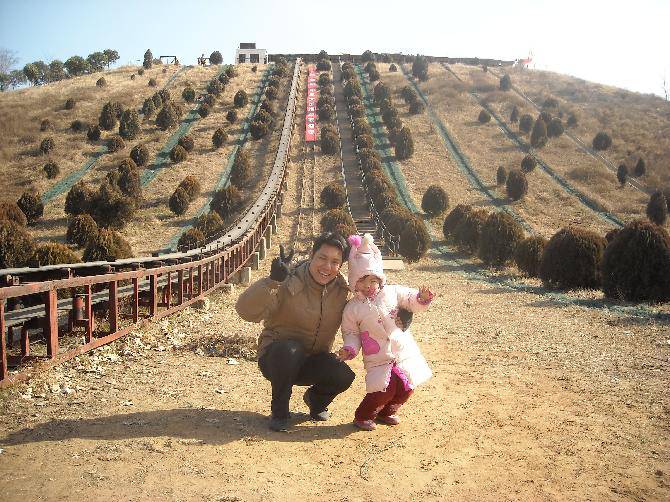 优优和爸爸一起玩滑草,一点都不害怕,玩的真高兴。