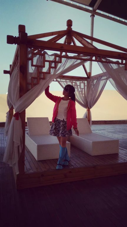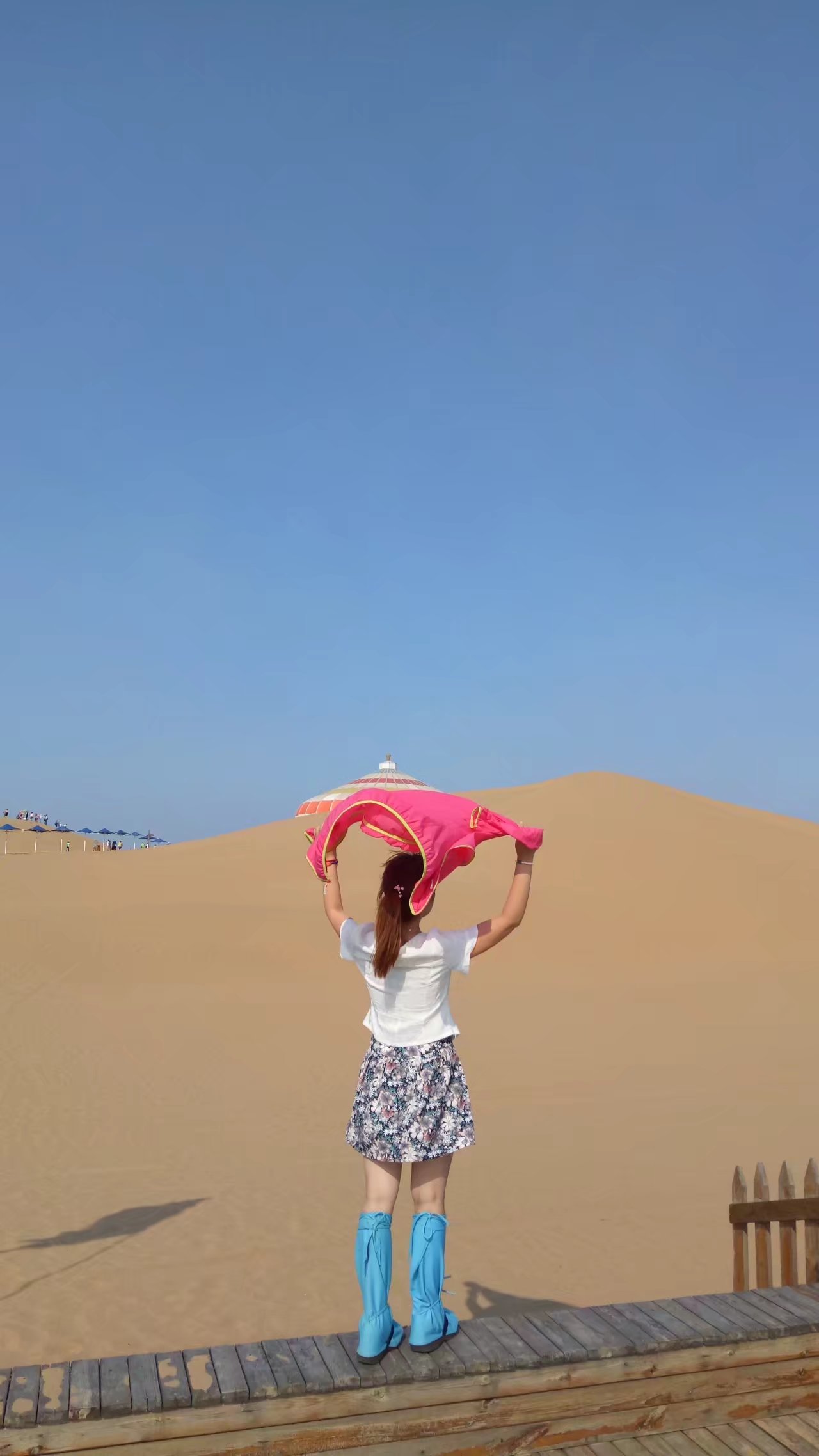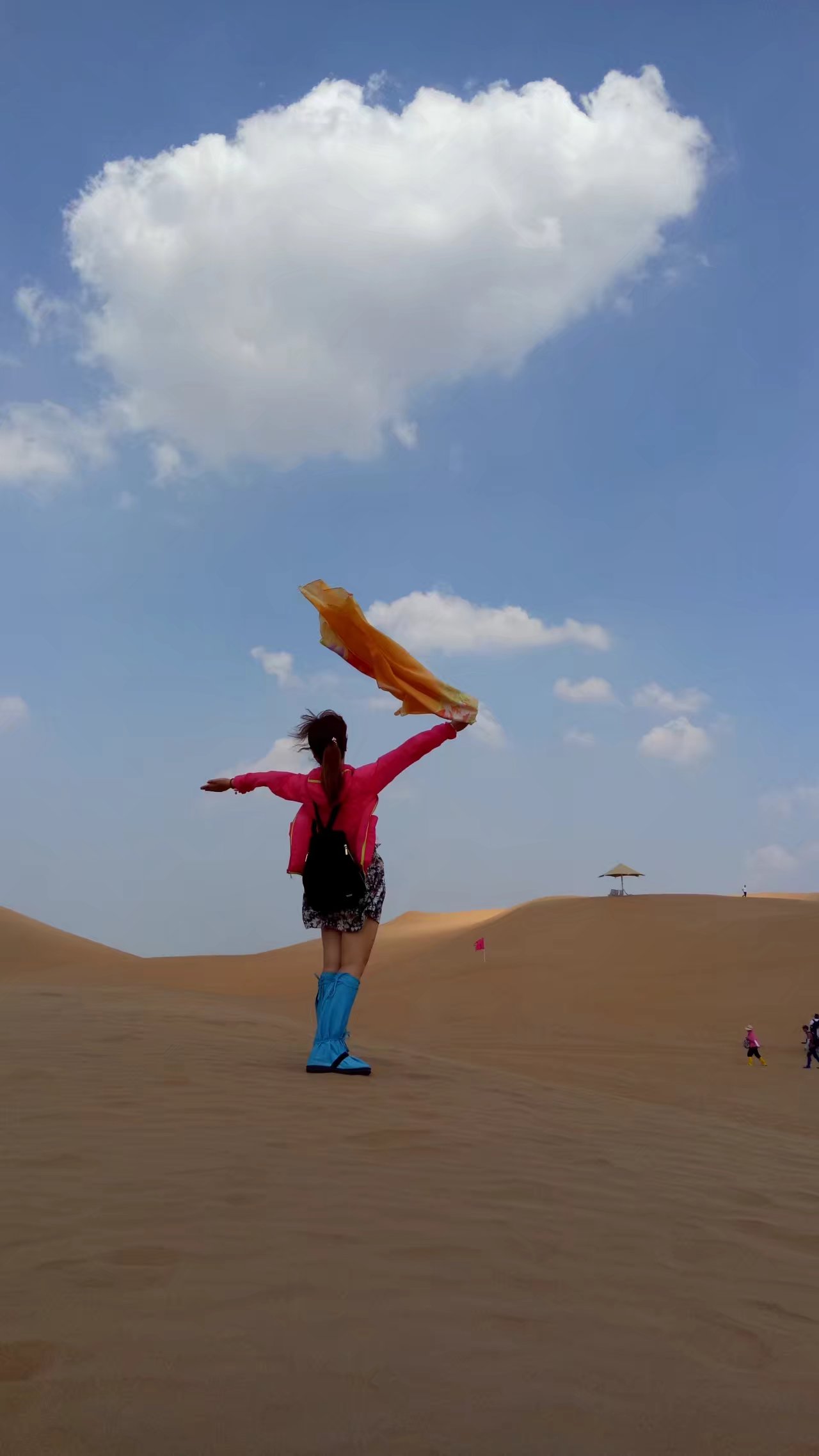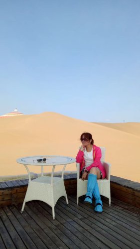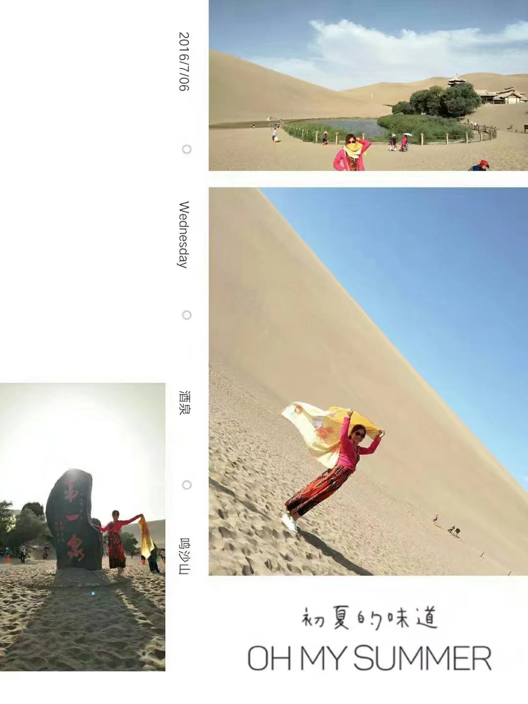 最美的风景在路上 ——大漠鸣沙 关于大漠,印象最早来自中学地理图册上密密麻麻的黄点,后来是语文书中“大漠孤烟直,长河落日圆”的壮阔雄奇;是 “大漠沙如雪,燕山月似钩”的悲凉肃杀;是“一去紫台连朔漠,独留青冢向黄昏”的沉重;也是小说电视剧里精绝古城的神秘……… (一) 敦煌,丝路古道上的一颗璀璨明珠。古道悠悠,驼铃如歌,去敦煌,鸣沙山月牙泉肯定是必去的。“传道神沙异,暄寒也自呜,势疑天鼓动,殷似地雷惊,风削棱还峻,人脐刃不平”。这首诗,是唐代诗人对敦煌鸣沙山奇观的描述。鸣沙山自古就以璀璨、传神的自然奇观吸引着人们。西汉时就有鸣沙山好似演奏钟鼓管弦音乐的记载,《后汉书•郡国志》引南朝《耆旧记》云:敦煌“山有鸣沙之异,水有悬泉之神”。《旧唐书•地理志》载鸣沙山“天气晴朗时,沙鸣闻干城内”。敦煌遗书载鸣沙山“盛夏自鸣,人马践之,声振数十里,风俗端午,城中子女皆跻高峰,一齐蹙下,其沙吼声如雷”。清代《敦煌县志》将“沙岭晴鸣”列为敦煌八景之一(来自百度)。 而与之相倚的月牙泉则更是敦煌诸多自然景观中的佼佼者,被誉为“塞外风光之一绝”。月牙泉远远望去形似月牙,四周被流沙环抱,虽遇强风而泉不为沙所掩盖,因“泉映月而无尘”、“亘古沙不填泉,泉不涸竭”而成为奇观,不得不让人感叹大自然的神奇。 于下午到达,天太热,接待人员安排我们直接坐车到达了泉边,没有骑骆驼,心里倒是有一丝丝的遗憾。工作人员说沙面温度太高,休息过后可到傍晚时再去尽兴游玩。于是,找一泉边胡杨树荫下而坐,看如织的游人围泉边而行,看着在这神奇的沙海中偎依着的一泓清泉,四周沙丘包围,似一位少女旁若无人的睡着。千百年来,任尔风沙肆虐,她总是荡漾着笑靥,滋润着周边的生命,她那神奇的月牙形,实在玲珑可爱,也许正因为此,沙漠才止住了其蛮横的脚步吧。 孩子们却早已耐不住性子要去滑沙了!滑沙,需要爬到高高的山顶,我是“望顶兴叹”的,怕热,怕晒,自觉给大家看行李,于是一众人轻装上阵,欢笑大叫着奔向山顶,一遍遍的将欢声笑语洒在大漠上。沙地松软,细沙绵绵,索性脱了鞋套,双脚踩在上面,任时光在不知不觉中流走。 敦煌的夜来得晚,九点太阳才落山,夜色中的月牙泉,又是另一番的美。于暗夜离开时,远远望去月牙泉是那么平静,静静的水面折射着月光的晶莹,泛着一掬银光。四周胡杨、芦苇、罗布麻簇拥,蓬蓬松松倒影水面,高高矗立的塔楼,夜灯通明,人去声消,终于渐归平静。 (二) 响沙湾,地处中国著名的库布其沙漠的最东端,被称作“黄河金腰带上的金纽扣”。也是会唱歌的沙漠,有人说这种神秘的沙歌妙音“春如波涛轰鸣,夏拟虫鸣蛙叫,秋比马嘶猿啼,冬似雷鸣划破长空。”只是白天人声喧嚣,自是感觉不到。 大巴,索道,直达沙漠腹地。如今的响沙湾已发展为集观光与休闲度假为一体的沙漠休闲度假景区了,悦沙休闲岛,仙沙休闲岛,各个度假岛都有不同的主题。沙漠冲浪车的有趣,沙漠摩托的刺激,空中滑索的惊险,轨道自行车的悠闲,我已完全不惧晒黑,将自己交给了大漠,每个项目都逐一体验,且终于骑上了骆驼! 骆驼跪地,才能艰难骑坐之上,待骆驼站起的那一瞬间,才发觉这“沙漠之舟”竟如此高大。一个带队驼手引领,踏着细沙,一摇一摆,一颠一顿,顺着起伏蜿蜒的沙山前行,耳边响起清脆的驼铃声和朋友“梦驼铃”的歌声。以前只在脑海中浮现的画面,现在自己终于成为画面中的主人公,可事实上感觉并没有你想象中舒服,甚至不敢乱动,一边兴奋着一边紧张着。看远处山与峰相互独立又紧密联系,高低错落,明暗相间。骆驼重复着千万遍的老路,我却领略着从未感受的新奇和瑰丽;骆驼踏着平稳的步伐前行,我却一直心潮起伏、澎湃涌动。想象着牵骆驼的那人每日要在这大太阳底下,来回走这么几趟,心中竟生出些许不忍。 在沙丘起伏无际的沙漠里,难得的是有各种深浅的大型泳池。玩累了,可以躺在清爽的沙滩床上,美美地过上几个小时,同时可以与同行的人边吃边喝边聊,每天还会有十多场不同的演出或比赛,艺术的、体育的,当真是既娱乐又休闲啊! 返程,坐沙漠深处的火车。目光所及,浩海茫茫,一望无际。山光滑而有韵致,线条流畅,恰似清流宛转,纯净的淌泻。阳光渲染着瑰美,光和色的合奏,金黄闪烁着耀眼,似锦缎般展开。或如长蛇,或如鳞鱼,弯弯相连,勾勾相绕,链链相扣,圈圈相接,延至天边。 “当下一批客人来的时候,你可能已经忘记我这个过客了!”不知怎的,离开时就想起了《新龙门客栈》,想起那曾经发生在大漠上的恩怨情仇、剑光游走,想起莫言被流沙掩埋的绝美画面。大漠之上,天地变色,风沙呼啸,新龙门客栈的旗帜,也许会永远飘扬在贺兰山下龙门关前,大漠朔风之中,关于大漠故事也终会继续吧!